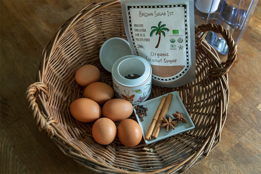 台湾でよく食べられている、お茶に八角とか、いろいろスパイスと、少しお醤油とかで味付けした料理。